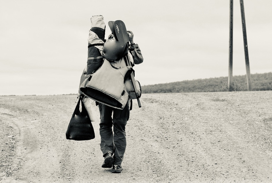 Heräsin hätkähtäen hikisenä. Kirkas valo tunkeutui voimakkaasti ja teltta kylpi lämmössä. Avasin molemmat ovet ja nautin raikkaasta aamuilmasta. Kahvia juodessani suunnittelin päivän reitin uudelleen. Aloittaisin aiemmasta poiketen kävelemällä, sillä tuuli oli edelleen voimakas, enkä tuntenut sisäistä kiinnostusta kastua heti aamupäivällä. Patikka kuivassa kesäpäivän säässä tuntui paljon houkuttelevammalta. Kävelin suunnilleen kuuden kilometrin matkan ja tulin pienen s-muotoisen järven rantaan. Laskin kantamukset ja touhukkaasti täytin kumilautan. Kaikki valmisteltuani istuin ja söin välipalaa. Innokkaana jatkamaan matkaa tempaisin repun selkään ja kuulin ”rusahduksen”. Laskin repun takaisin maahan. Olin pyörtyä kauhusta, kuivapussirepun halkaiseva vetoketju oli irronnut vetimen alta. Tuijotin sitä sanattomana ja tilannetta täysin ymmärtävänä. Nopeasti singahtelivat ajatukset keskeyttämään joutumisesta tai varusteiden totaalisesta kastumisesta tulevien päivien aikana.